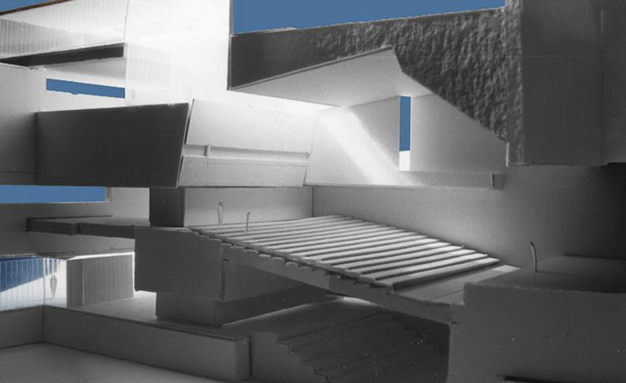 LAS ARISTAS NETAS Y DURAS DE LA CAJA PETREA DE HORMIGÓN BLANCO PERFILADOS POR EL SOL, EL CUERPO ACRISTALADO QUE VUELA SOBRE LA CALLE, EL GRAN LUCERNARIO A LA SALA “HORADADO EN LOS MUROS”, …HABLAN DE UN EDIFICIO ESCULTÓRICO, RECONOCIBLE, DE FUERTE PRESENCIA E IMPACTO URBANO.