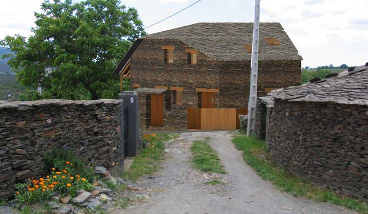 Todas las fachadas y pared colindante, así como las tapias de la casa serán de lajas de pizarra de morfología irregular con exfoliación natural, dispuestas horizontalmente al modo tradicional, sin rejuntar.